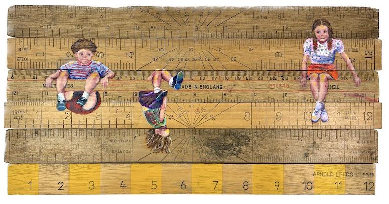 66cm x 47cm Oil on Vintage Rulers