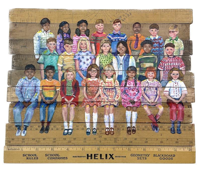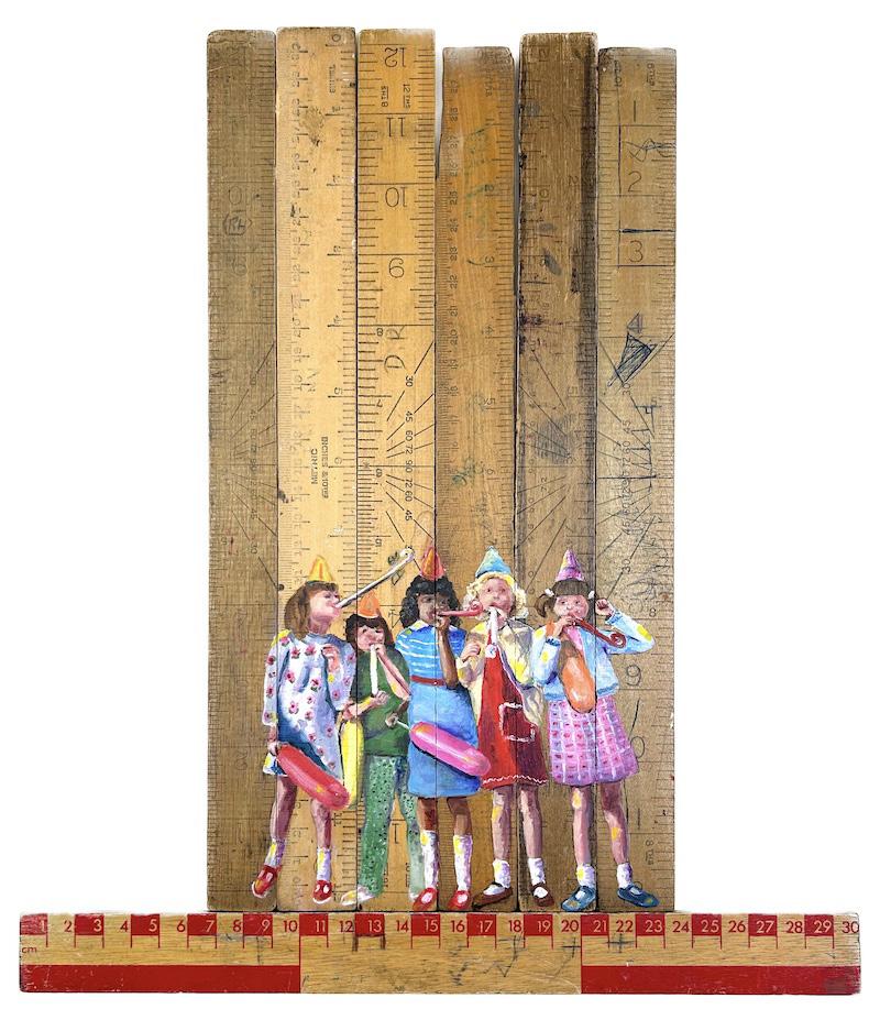 66cm x 52cm Oil on Vintage Rulers