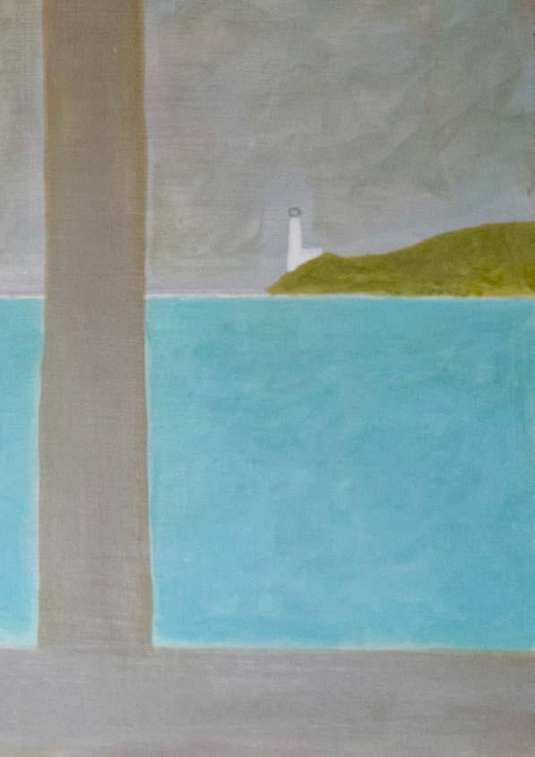 Window View to Pendeed Lighhouse Mixed Media Painting 73 x 73cm (Framed)