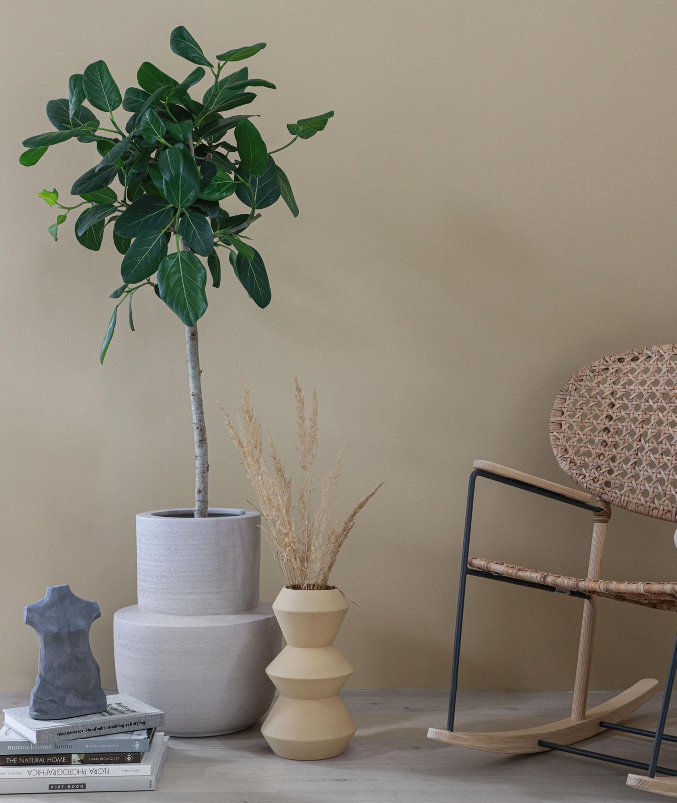 Kombinerer platejern og støpejern i et enkelt, kubisk design.