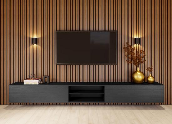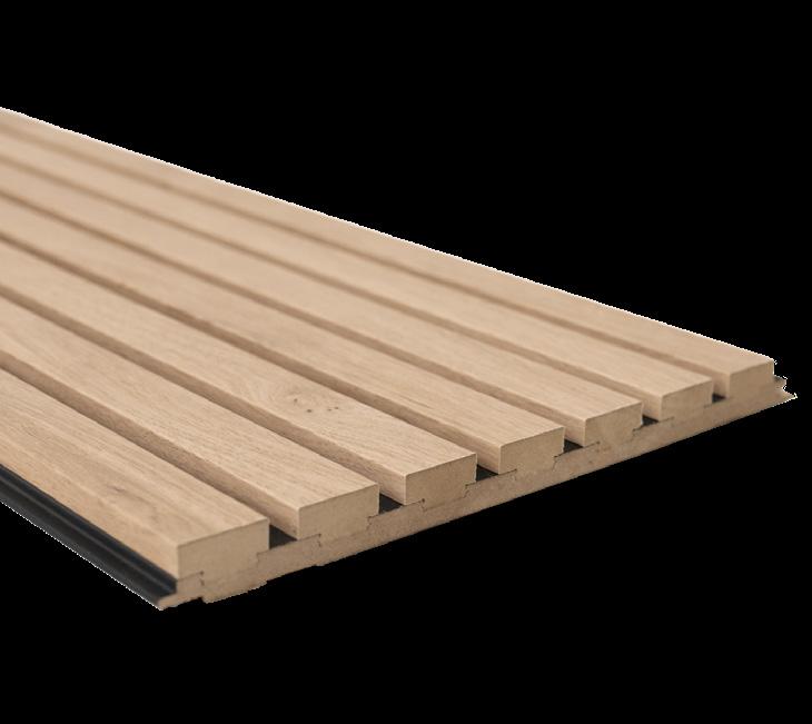 Med Maestro Spilepanel er jobben enkel. Her er spilene allerede festet til en mørk bakplate med not/fjær som monteres til veggen med stifter, klips eller lim. Innfestingen gir et rent resultat med skjult montering. Leveres i fargene Pepper Oak, Castle Oak og Black.