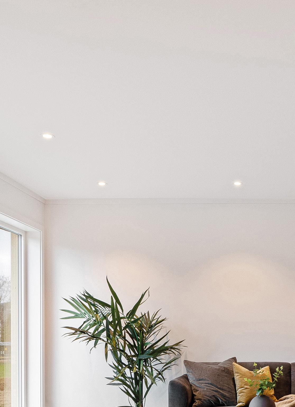 Trebaserte og tapetserte slette takplater med 4-sidig låseprofil beregnet for maling. Slett tak uten å måtte sparkle og pusse.