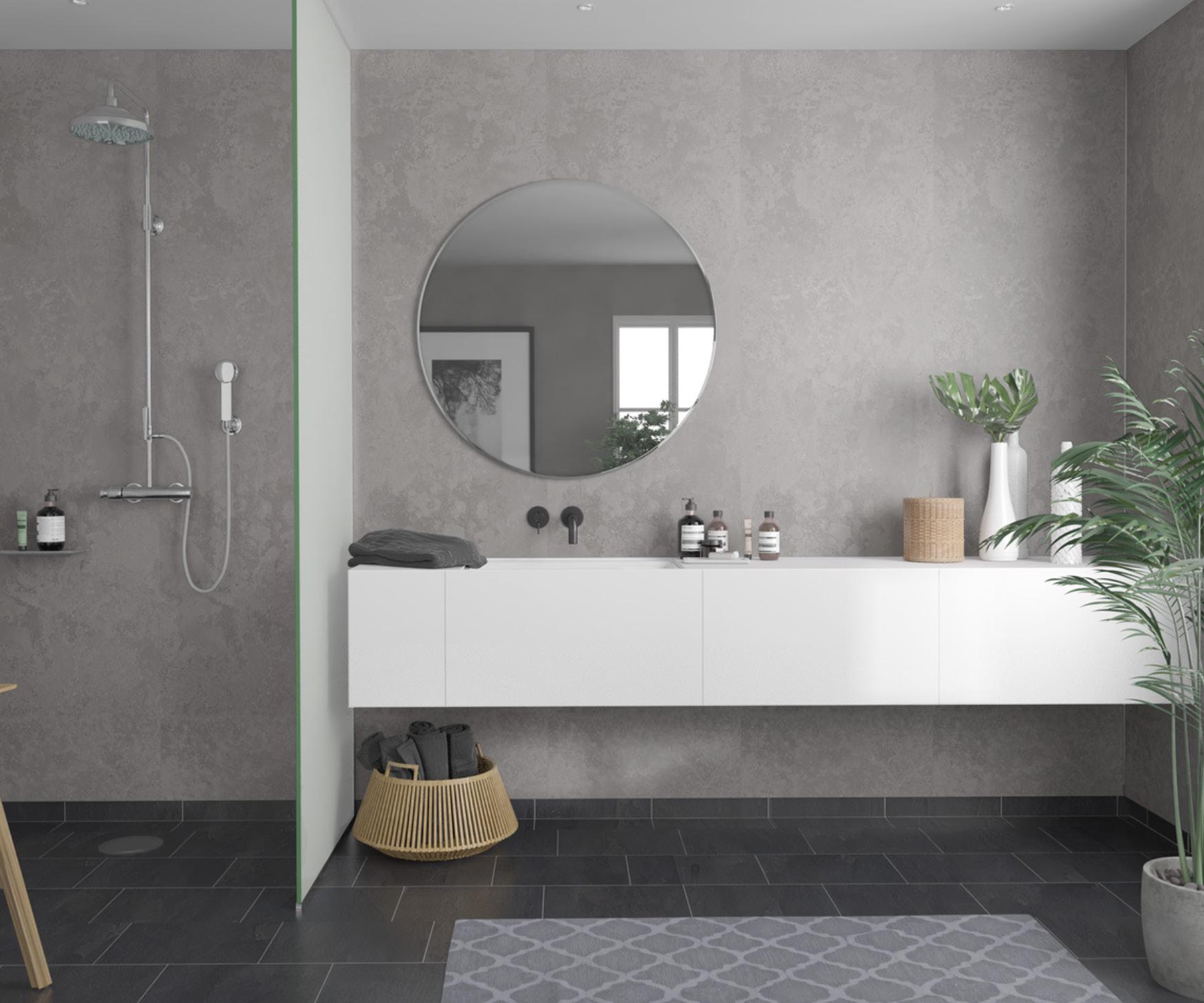 Fibo baderomsplater er et vanntett kledningssystem basert på kryssfinerplater belagt med høytrykkslaminat på framsiden og et balanselag på baksiden.