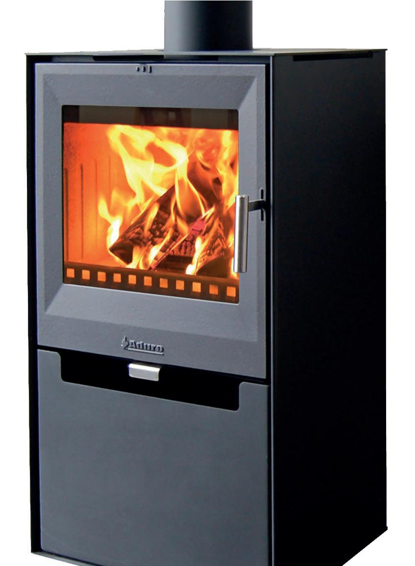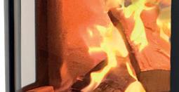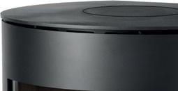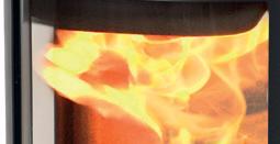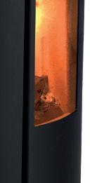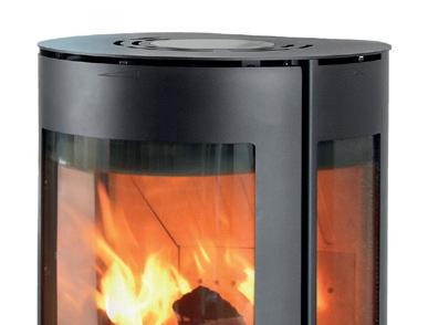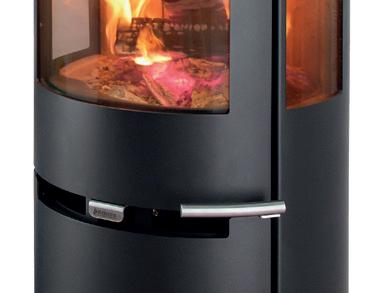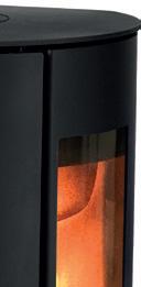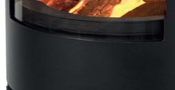 En stilren og moderne ovn med store glasspartier som gir 180 graders innsyn til flammene.