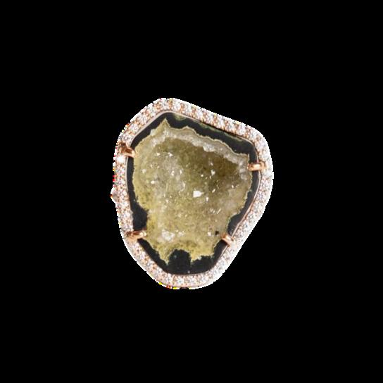 Karolin van Loon richtte haar juwelenmerk op om de ruwe schoonheid van de natuur te vieren Ze ontwerpt verfijnde stukken met agaatgeodes