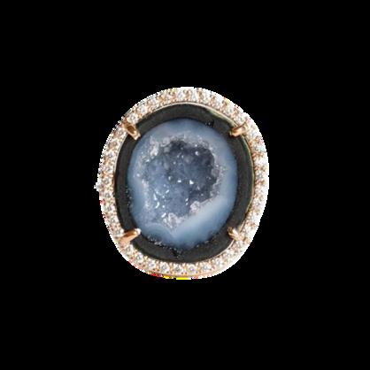 Een geode ontstaat wanneer een luchtbel in lava of een holte in vulkanisch gesteente zich gedurende miljoenen jaren langzaam vult met mineraalrijk water, waardoor er aan de binnenkant schitterende kristallen groeien terwijl de buitenkant ruw en gesloten blijft