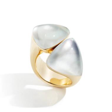 De driehoek staat centraal in de vernieuwde Freccia-collectie van Vhernier Iconische vormen krijgen een frisse twist, met een speels lijnenspel van roségoud en kleur Modern, verfijnd en onmiskenbaar Vhernier.