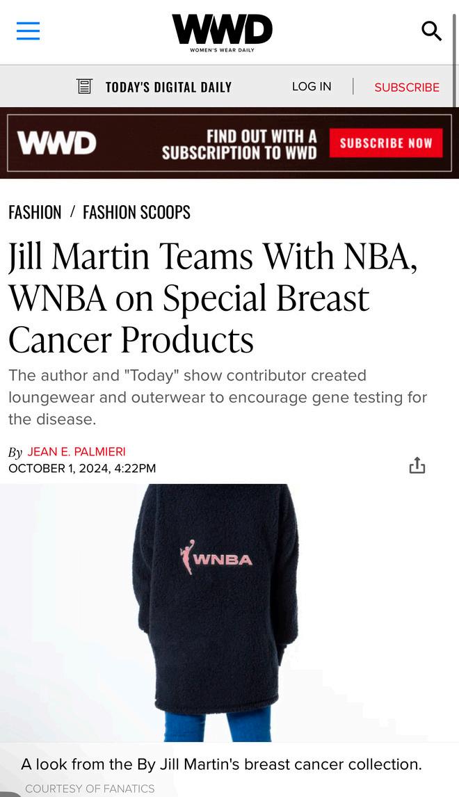 “What started as a phone call ended with one of the coziest (and charitable!) items coming to market in 2024 If you get a glimpse into Jill’s playbook, her keys to success are passion, perseverance, and personality. She’s creative, thoughtful and has been so involved in every step of the process – the CCO -- Chief Cozy Officer as I like to call her! It was incredible launching the NBA & WNBA sherpa loungers in honor of Breast Cancer Awareness month with Jill, who is an advocator, warrior, and survivor of breast cancer. ”