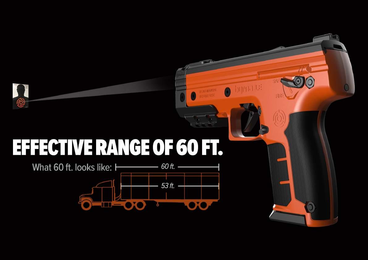 With batons and stun guns, you are in hand-to-hand combat before they are effective. Even with pepper spray or a Taser, you are range-limited to 10 to 15 feet. By then, the situation has escalated out of control.