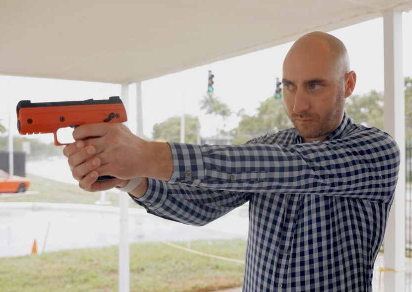 The problem was that there was nothing available on the market that could stop an assailant from a distance and was easy to carry on a concealed basis. Most compact less-lethal weapons, including everything from stun guns and batons to pepper sprays and electroshock devices, are severely range-limited. By the time the weapon is efective, the situation has escalated out of control. The .68-caliber projectile launchers that were available at the time were simply re-purposed paintball guns. As such, they were large and bulky and had serious limitations because they were never designed for self-defense.