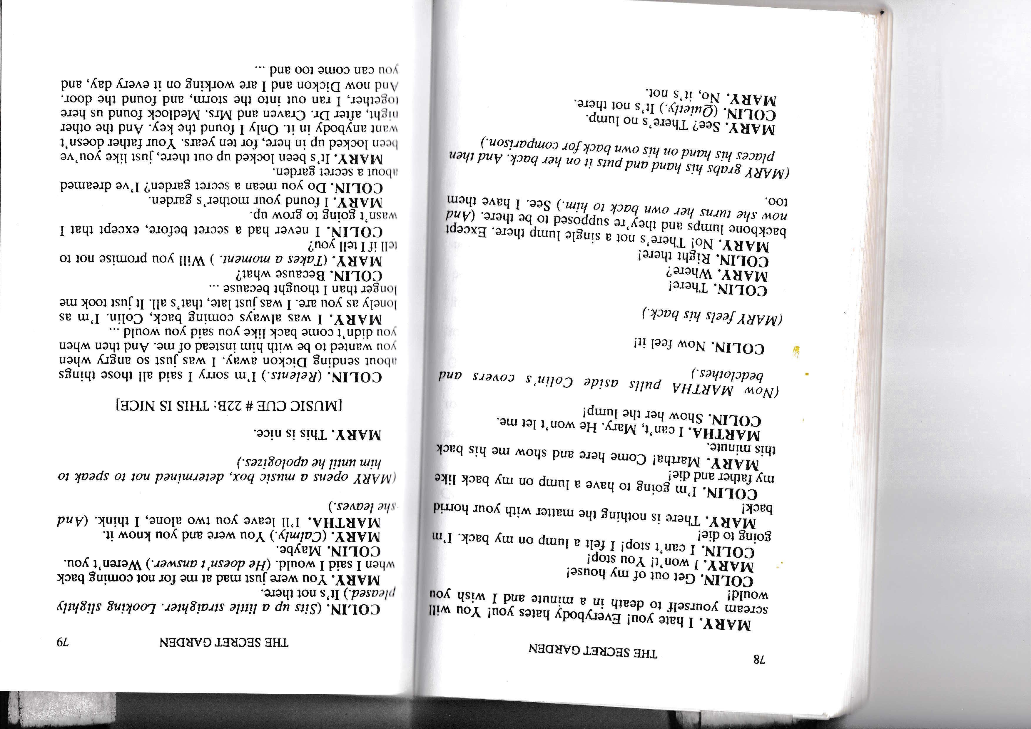 SARA: I am glad. (Looks around room) The garret would be rather nice if it wasn’t so very dreadful. (Laughs) It’s a good place to pretend in.