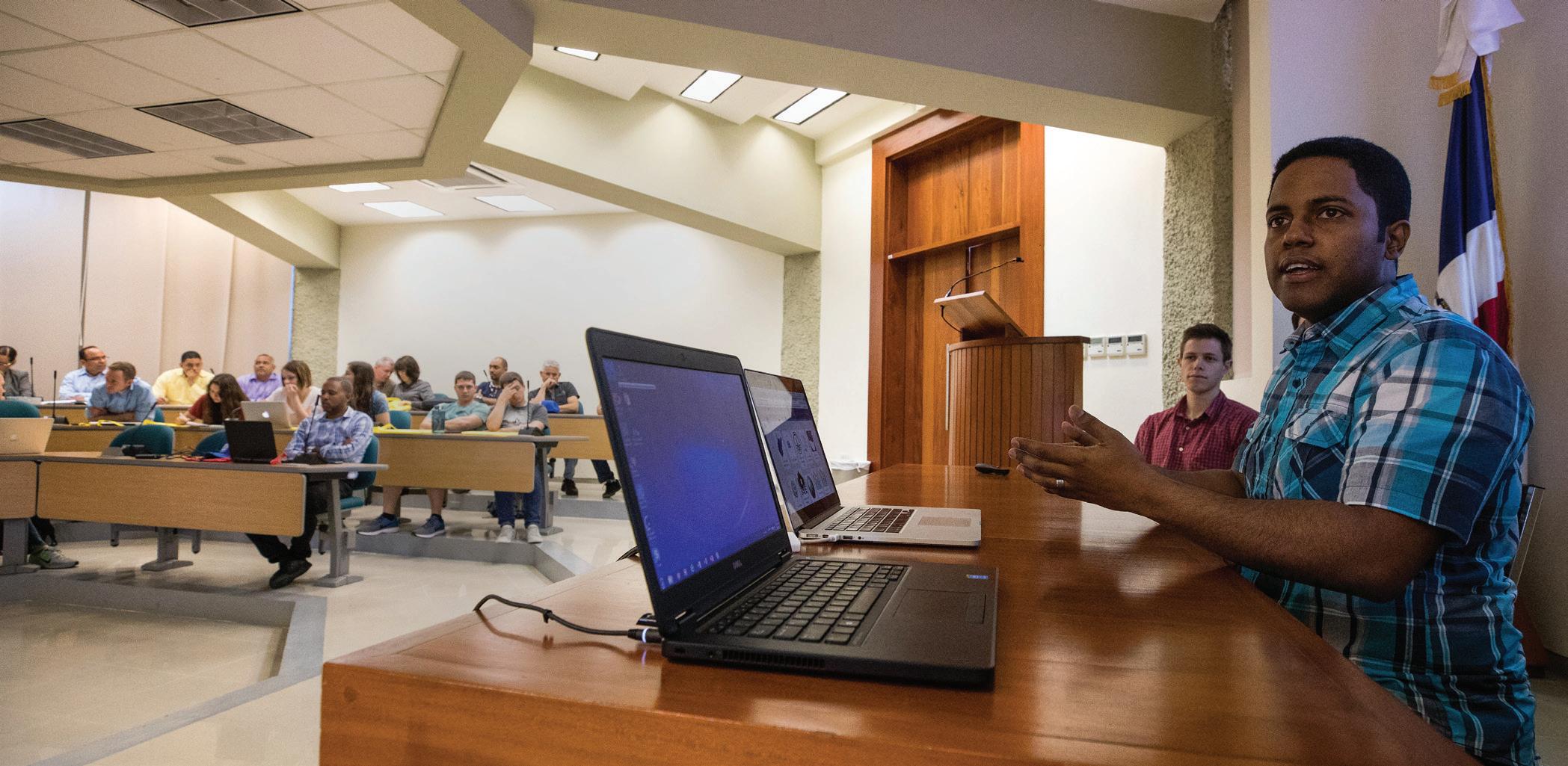 The active learning room is designed to foster a more interactive and collaborative learning experience. The new space features multiple LCD screens, collaborative tables, and extensive whiteboard space, enabling a dynamic and engaging classroom setting. This setup encourages student interaction and supports a flipped classroom model, where students engage more actively with the material and each other.