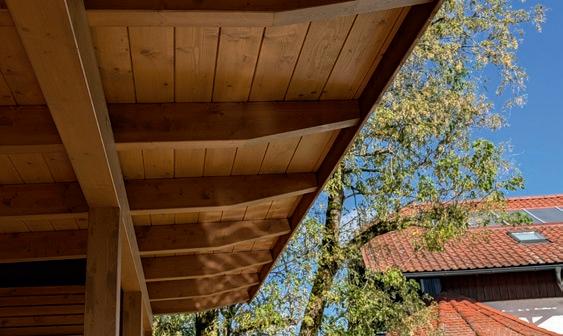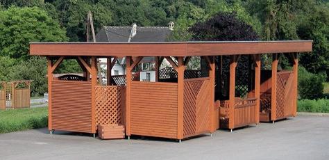 Diese können luftig oder komplett geschlossen gestaltet werden. Die Eindeckung erfolgt mit pulverbeschichteten Blechen oder Bitumenbahnen.