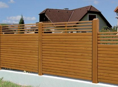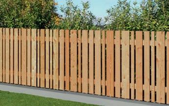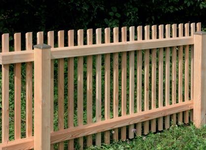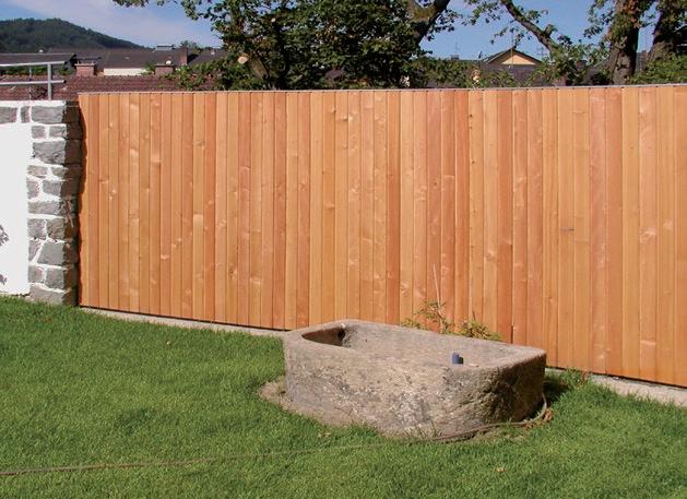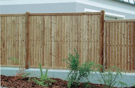 Die Bretter dieser Zäune sind in der Regel 75 mm breit und 19 mm dick. Die umlaufenden Kanten sind standardmäßig gefast.