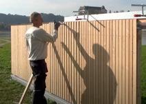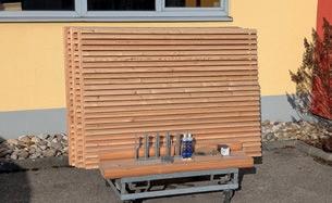 Das Holz bleibt unbehandelt. In den ersten Jahren verfärbt sich das Holz rötlich. Je nach Verwitterung wird sich nach etwa 1-2 Jahren die für Lärchenholz typische silbergraue Patina einstellen - Lebensdauer 40-50 Jahre, kein Streichen erforderlich.