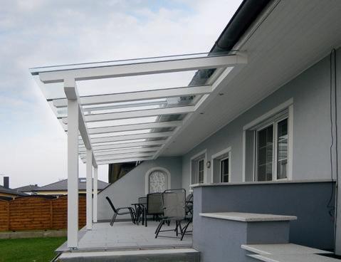 werden von FRÖSCHL individuell geplant und statisch berechnet. Bei Terrassenüberdachungen muss immer Verbund-Sicherheitsglas verwendet werden. Dieses Echt-Glas reinigt sich durch seine dauerhaft glatte Oberfläche weitgehend selbst. Im Gegensatz zu Kunststoffgläsern kann das Echtglas von Sparren zu Sparren ohne Querhölzer gespannt werden, was der Terrassenüberdachung einen sehr leichten Charakter verleiht.