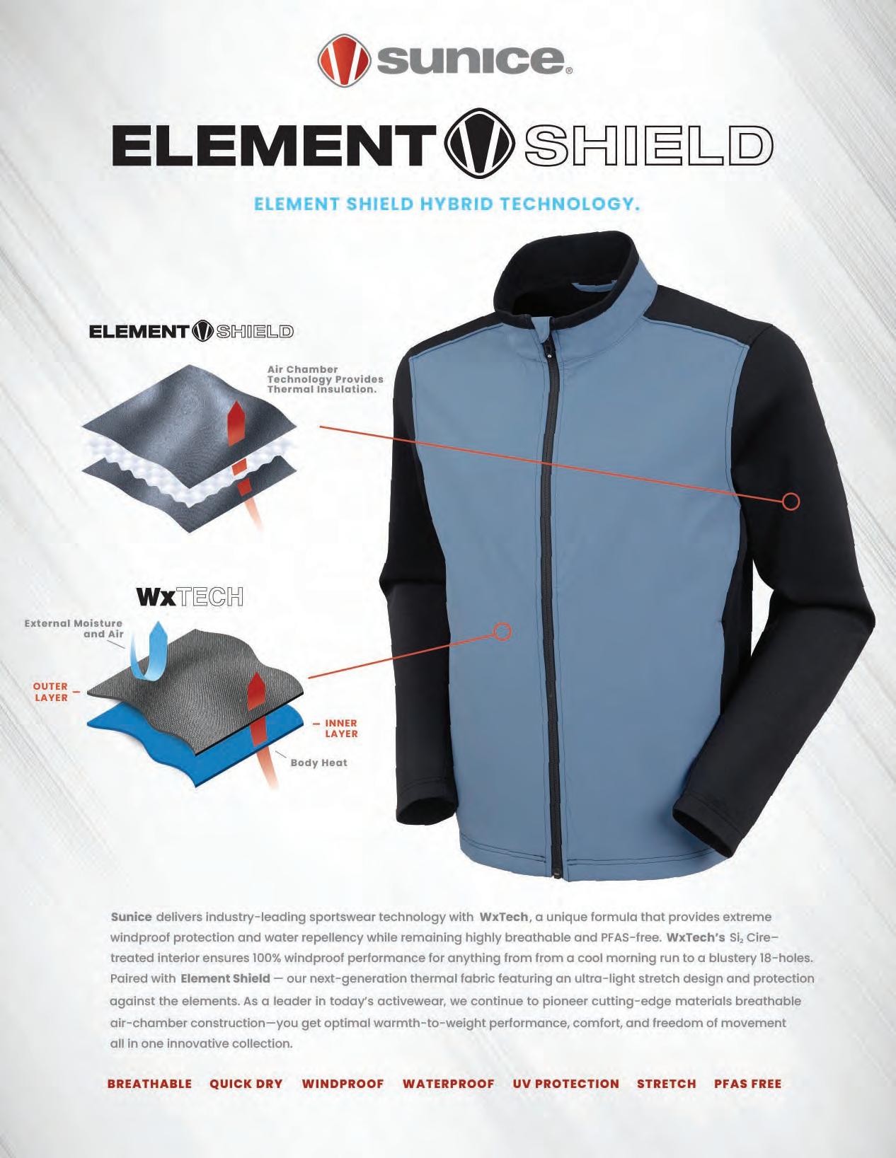 Sunice, the leader in sportswear technology and design, brings you WxTech – a unique formula geared toward providing extreme windproof protection - no matter what Mother Nature throws at you. Ideal for everything from from a cool morning run to a blustery 18-holes, fabric treated with WxTech will keep you comfortable while deflecting the elements.