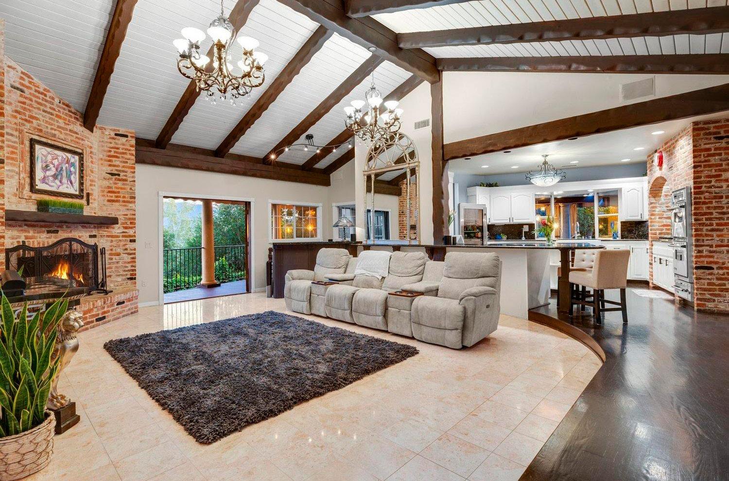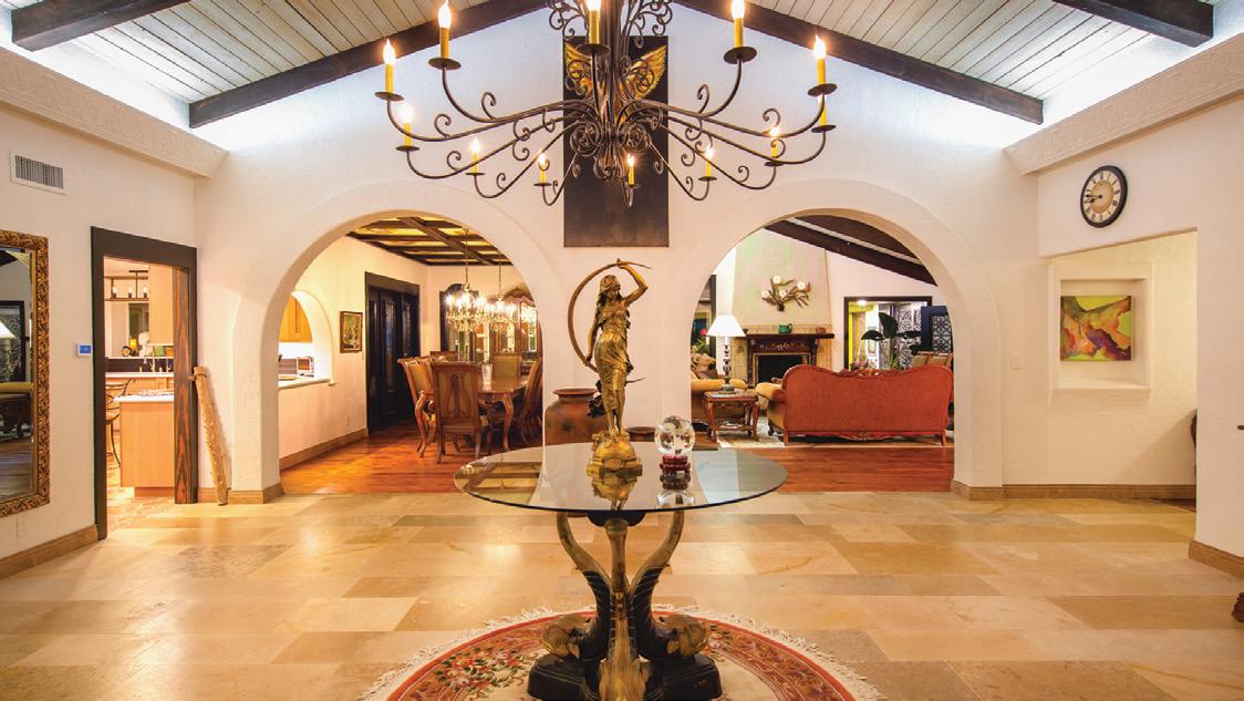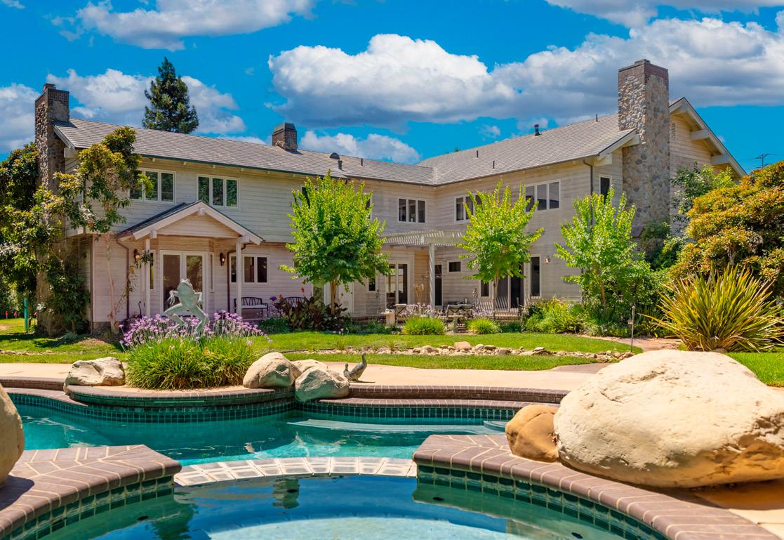 focal point of the estate. Guests and visitors can stay in the two bedroom, two bath guest house or any of the four other residences making this property perfect for a large family or an individual with an entourage. Massive outdoor patios and cooking areas, two large fountains, indoor pool with gym and recreation center make this property feel like a mini Hearst Castle. Your family and friends will feel like they are at a grand resort yet overflowing with charm.