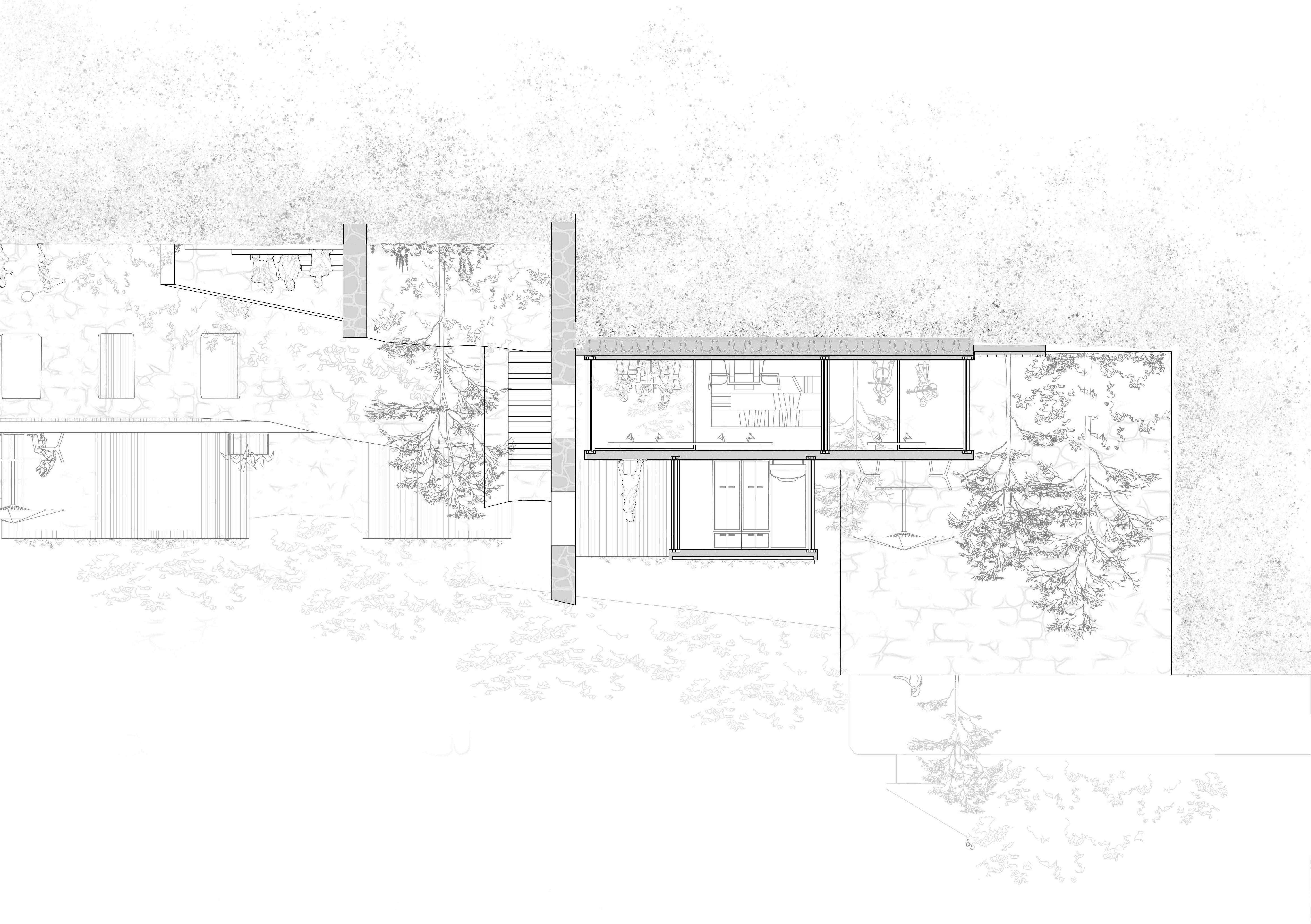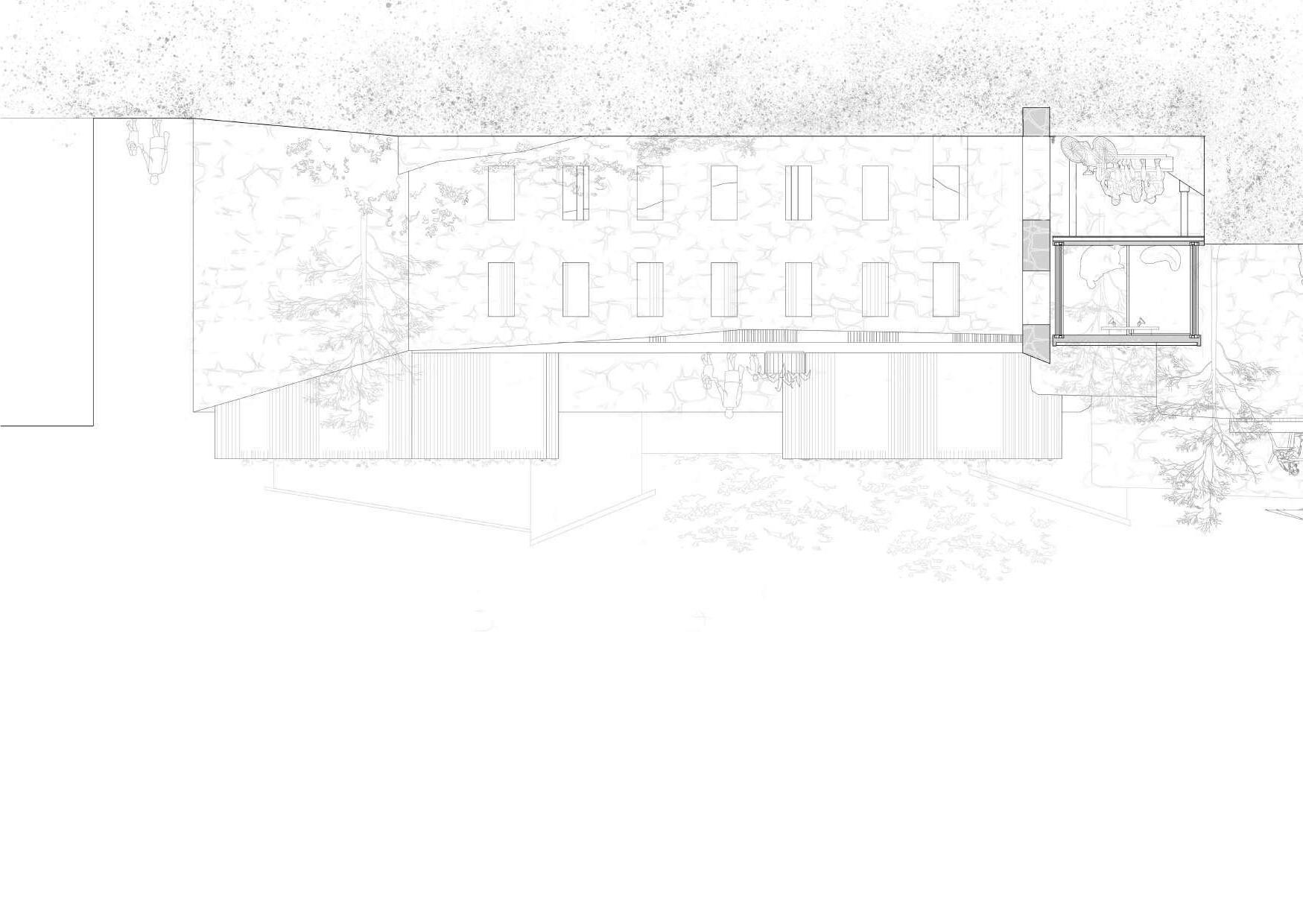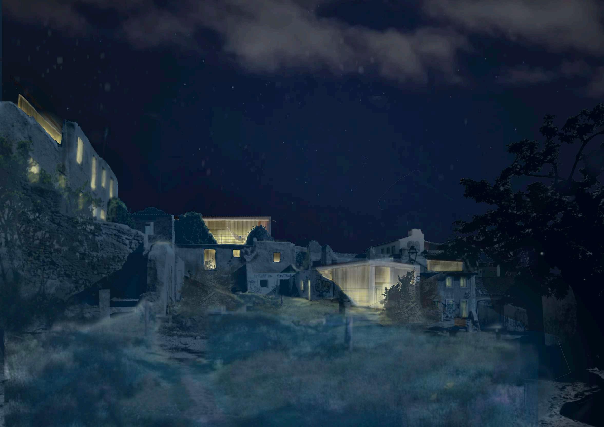 Para conectar la residencia a la ciudad sin comprometer la seguridad de las mujeres se utilizan las ruinas a pie de calle como barrera entre el complejo y el exterior, ya que los módulos se sitúan siempre detrás de las ruinas. Las ruinas tapan, dan intimidad y protegen sin aislar a las mujeres.