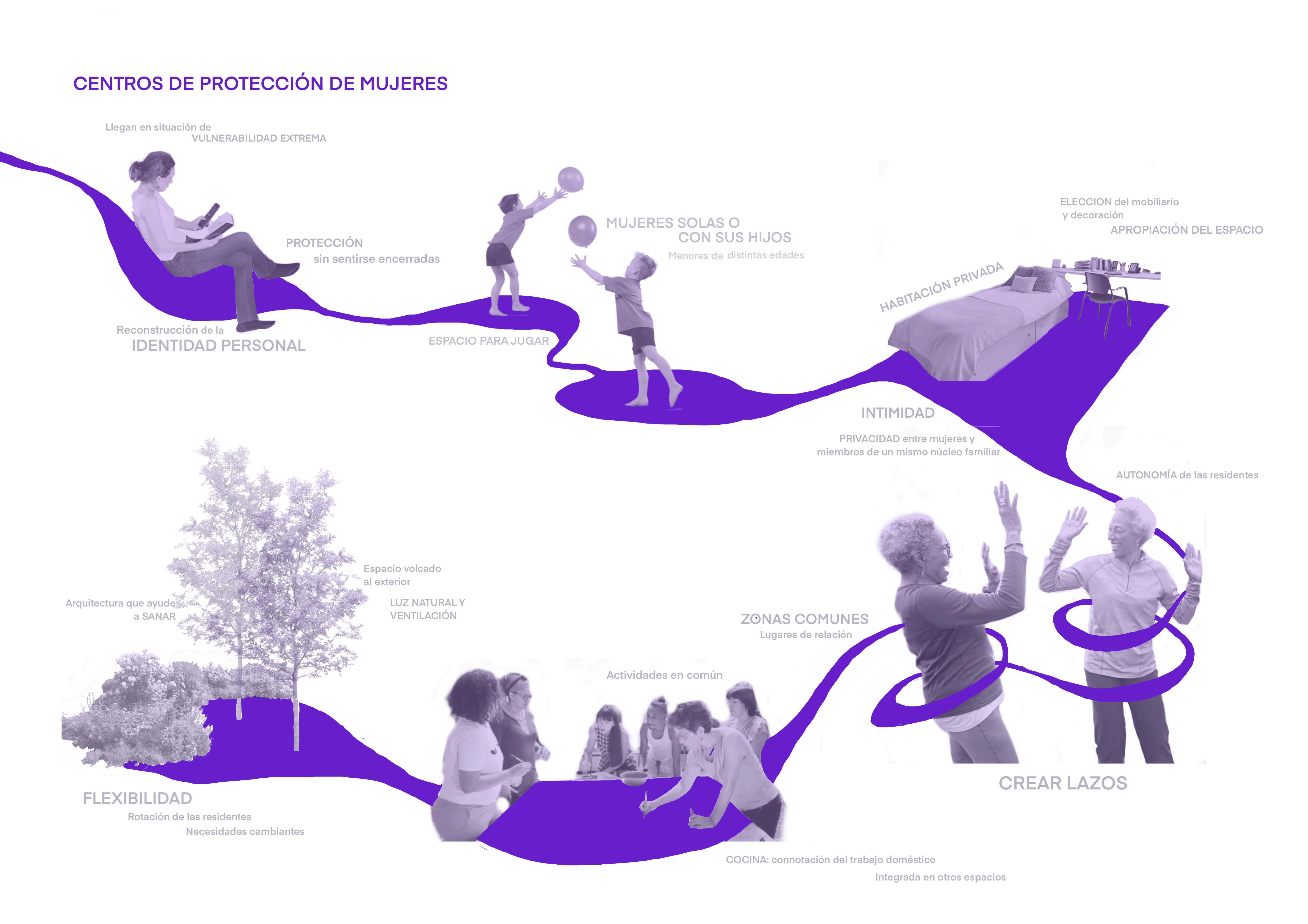 Se busca a través de la arquitectura crear un entorno seguro y flexible, que de fortaleza a las mujeres para continuar con su vida en normalidad, teniendo siempre en cuenta la riqueza y valor histórico de donde se sitúa el centro.