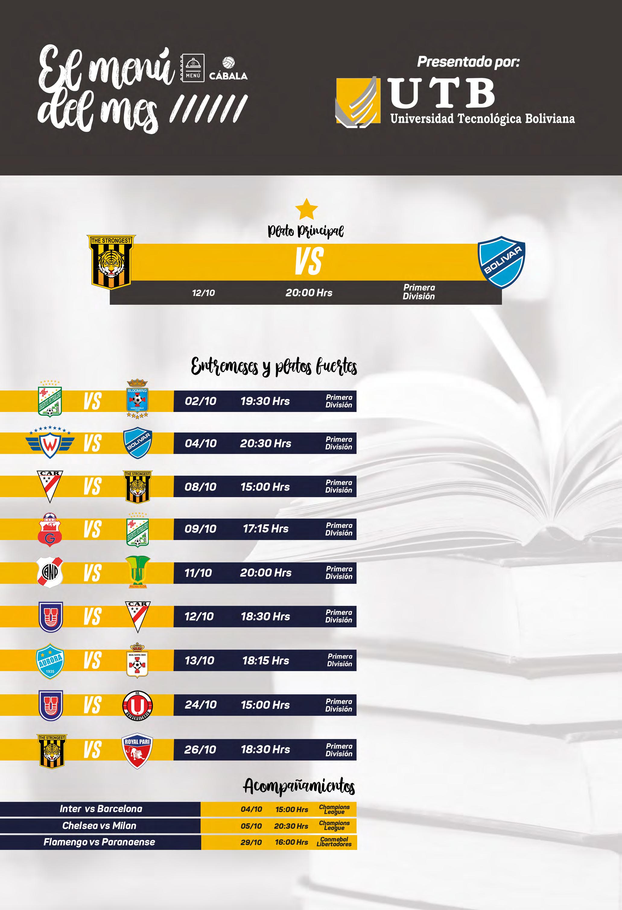 Jugador del Mes 18 6 14 16 20 28 30 32 34 36 40 El 11 Ideal Equipo Ideal FIFA 23 Fútbol Retro El Evento La Muralla Menú del Mes Amistoso Pitazo Final La Cábala La Imbatible Marketing Deportivo Bolivia vs Países Africanos Mario Guaman Martín Cáceres Los partidos más importantes Kasakas Plácido Domingo La Cábala de Gennaro Gattuso Hope Solo Album Panini