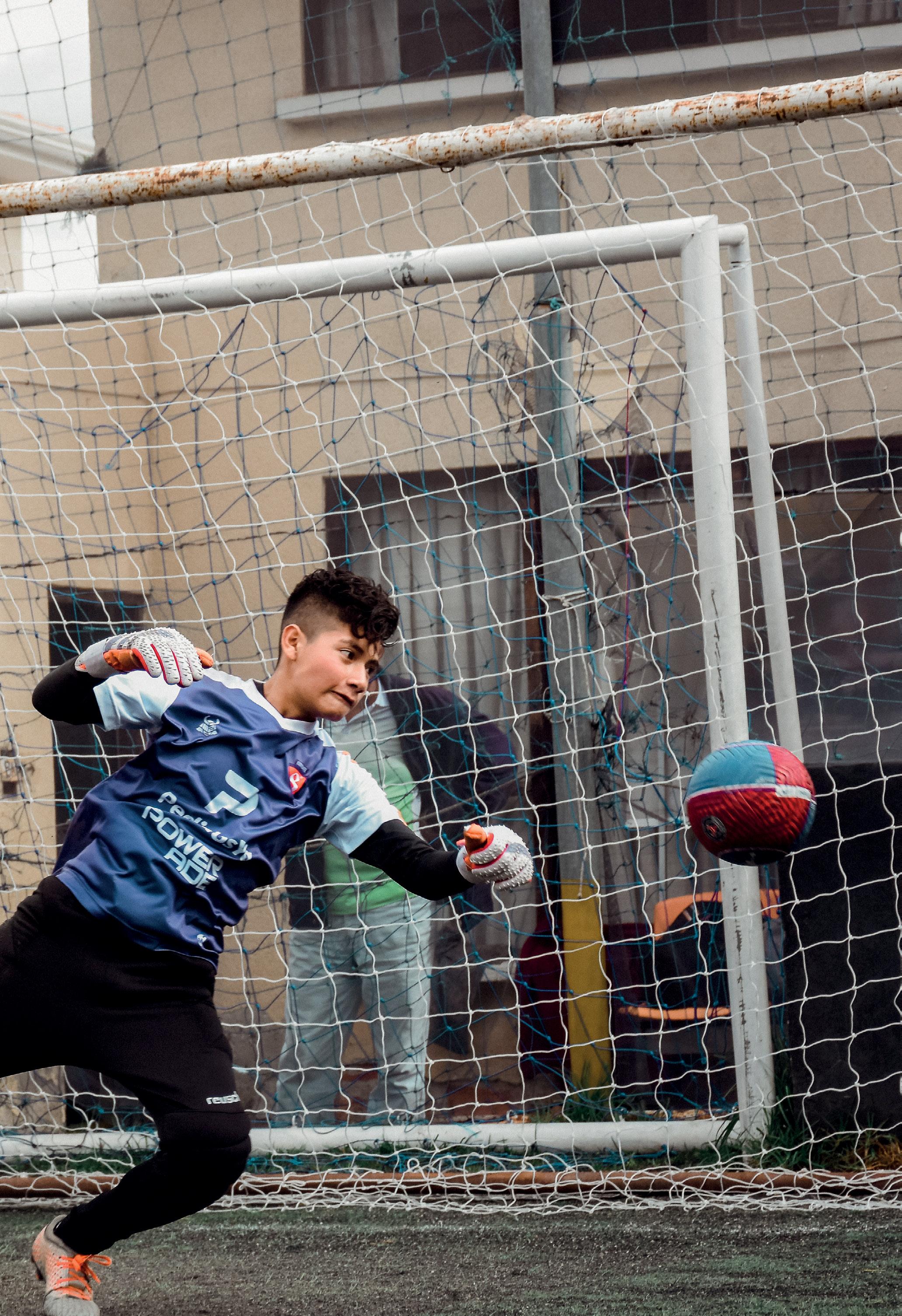 por el fútbol callejero desde mis tres años con mi papá y mi hermano, todas las tardes me enseñaban a jugar, a veces me daban pelotazos y eso me ayudó a no tener miedo a los que son más grandes. Aprendí a jugar fútbol sala en el colegio lo cual me permitió poder participar del campeonato Plurinacional Sub12 femenino”.