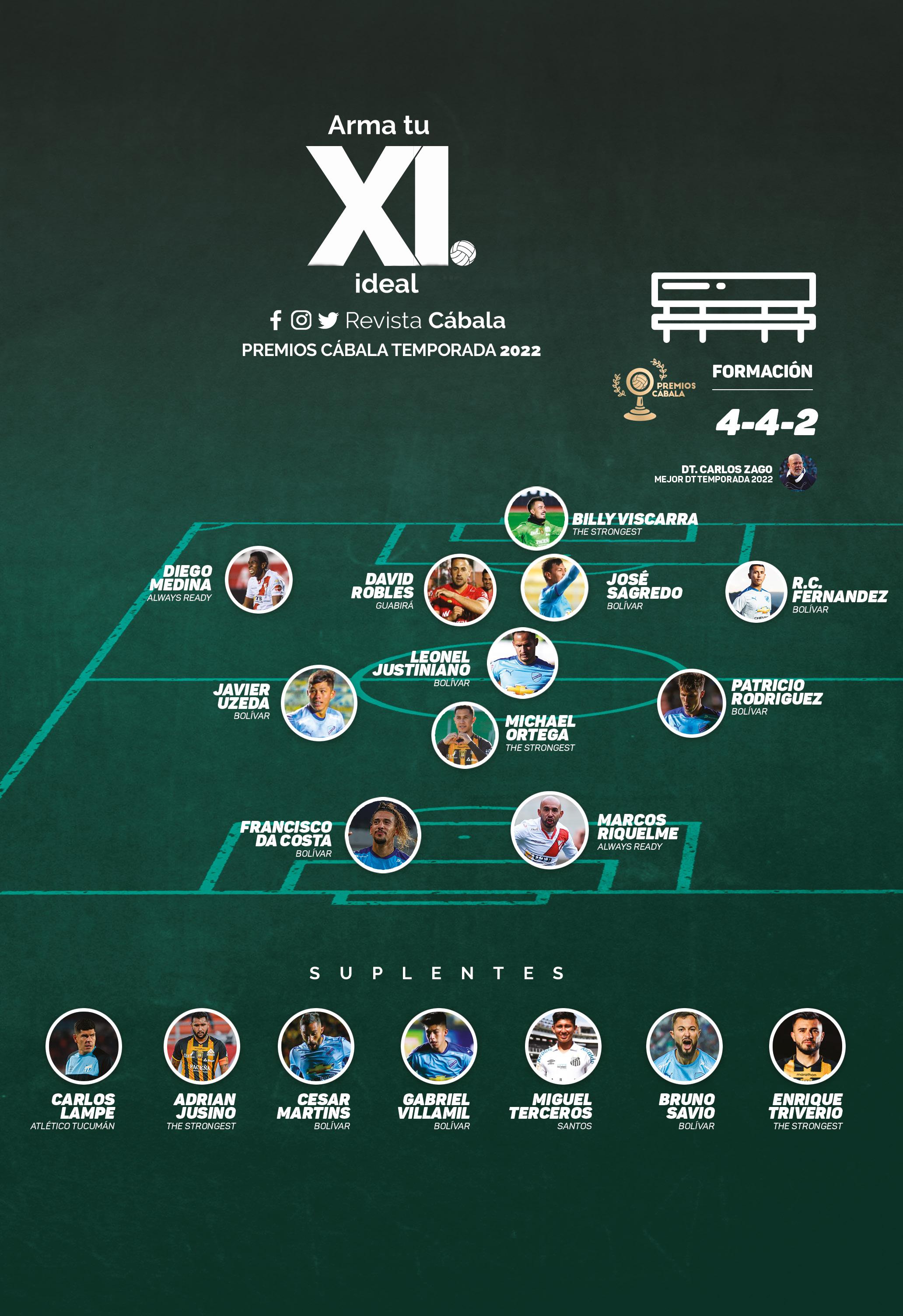 La temporada 2022 tuvo grandes protagonistas en el torneo Apertura que se vivió con mucha intensidad y en el Clausura donde los jugadores demostraron resistencia física para encarar el torneo largo. Con ese escenario en esta edición te traemos la alineación conformada por los ganadores de cada una de las categorías de los Premios Cábala Temporada 2022 completando algunos puestos con los finalistas de los nominados.