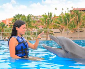 Este programa es ideal para familias, personas que no saben nadar y niños pequeños, asegurando que todos puedan interactuar con estas criaturas inteligentes de manera segura y acogedora. Ya sea que busques experimentar las maravillas de los delfines por primera vez o desees crear recuerdos duraderos con tus seres queridos, este programa ofrece la oportunidad perfecta para profundizar tu apreciación por la vida marina.