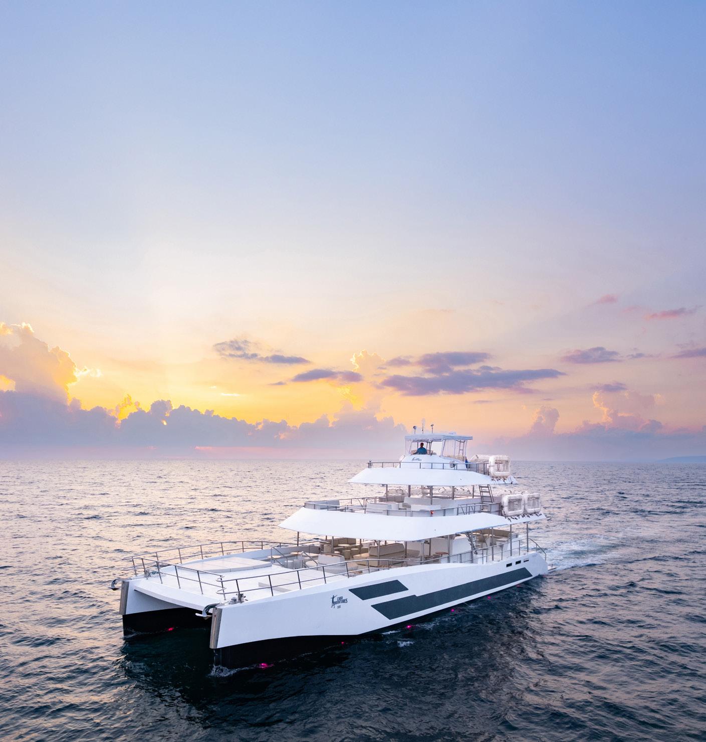 Vive el atardecer con el sello de la hospitalidad de Cabo Adventures en un ambiente elegante y cuidadosamente diseñado para celebrar la magia del mar durante la hora dorada.