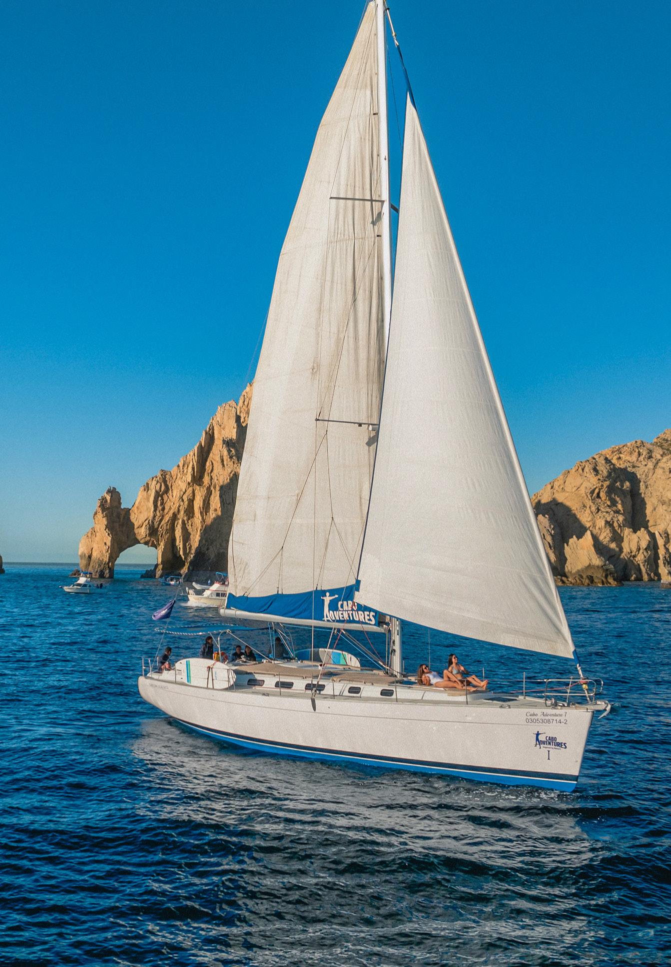 Navega a bordo de nuestros elegantes veleros y catamaranes diseñados para ofrecer una navegación cómoda y suave. Disfruta de la vista del famoso Arco, la encantadora Playa del Amor y la colonia de leones marinos mientras navegamos por la costa. Nuestro atento equipo estará a tu disposición para brindarte un servicio de clase mundial, sirviendo aperitivos recién preparados y bebidas refrescantes de nuestra barra libre.