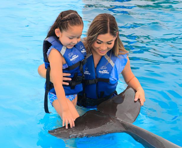 Este programa es ideal para familias, personas que no saben nadar y niños pequeños, asegurando que todos puedan interactuar con estas criaturas inteligentes de manera segura y acogedora. Ya sea que busques experimentar las maravillas de los delfines por primera vez o desees crear recuerdos duraderos con tus seres queridos, este programa ofrece la oportunidad perfecta para profundizar tu apreciación por la vida marina.