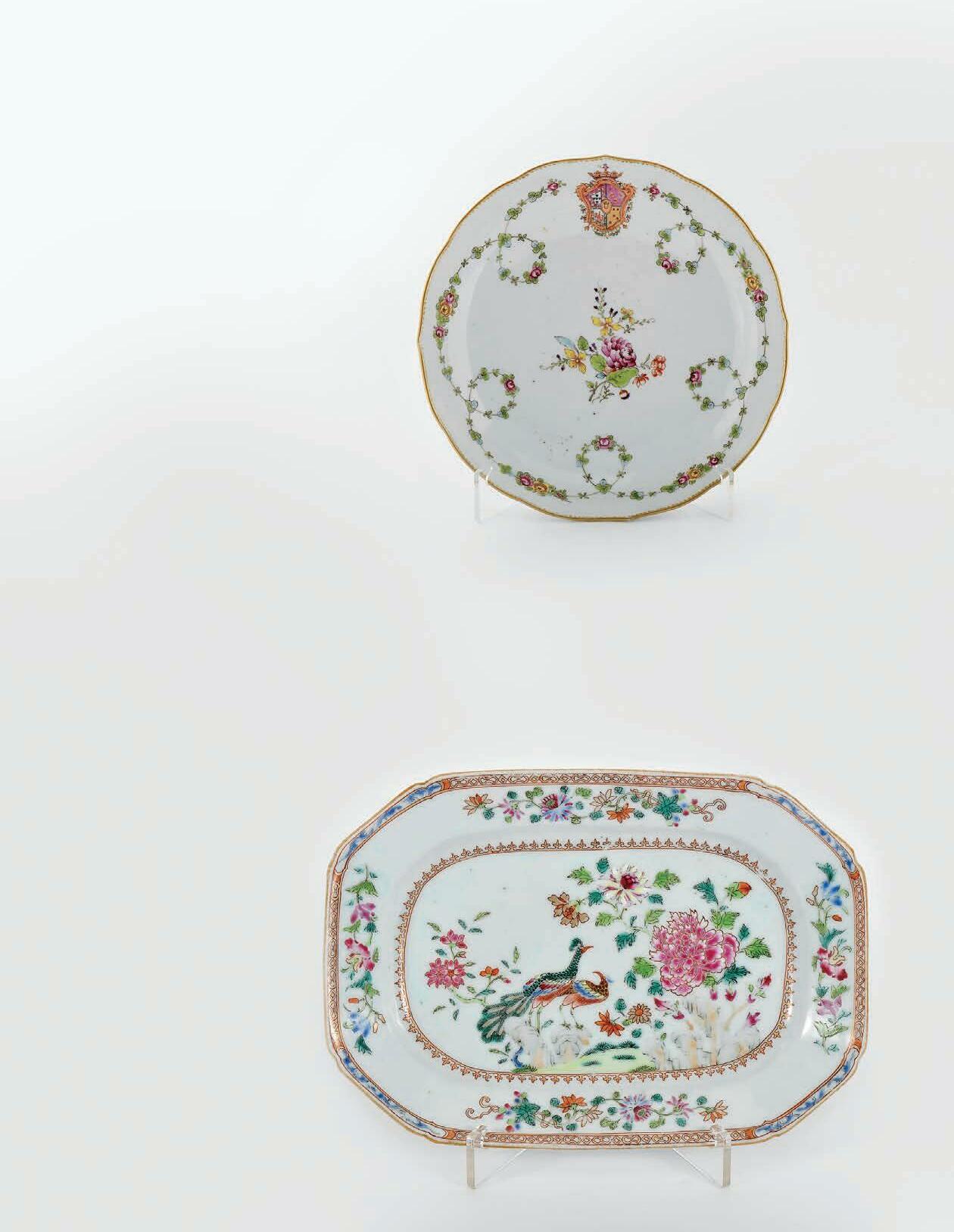 faiança de Coimbra, decoração dita de «Brioso» a azul e vinoso “Pássaro entre vegetação”, Português, séc. XVIII, falta do vidrado do bordo Dim. - 35 cm € 600 - 900