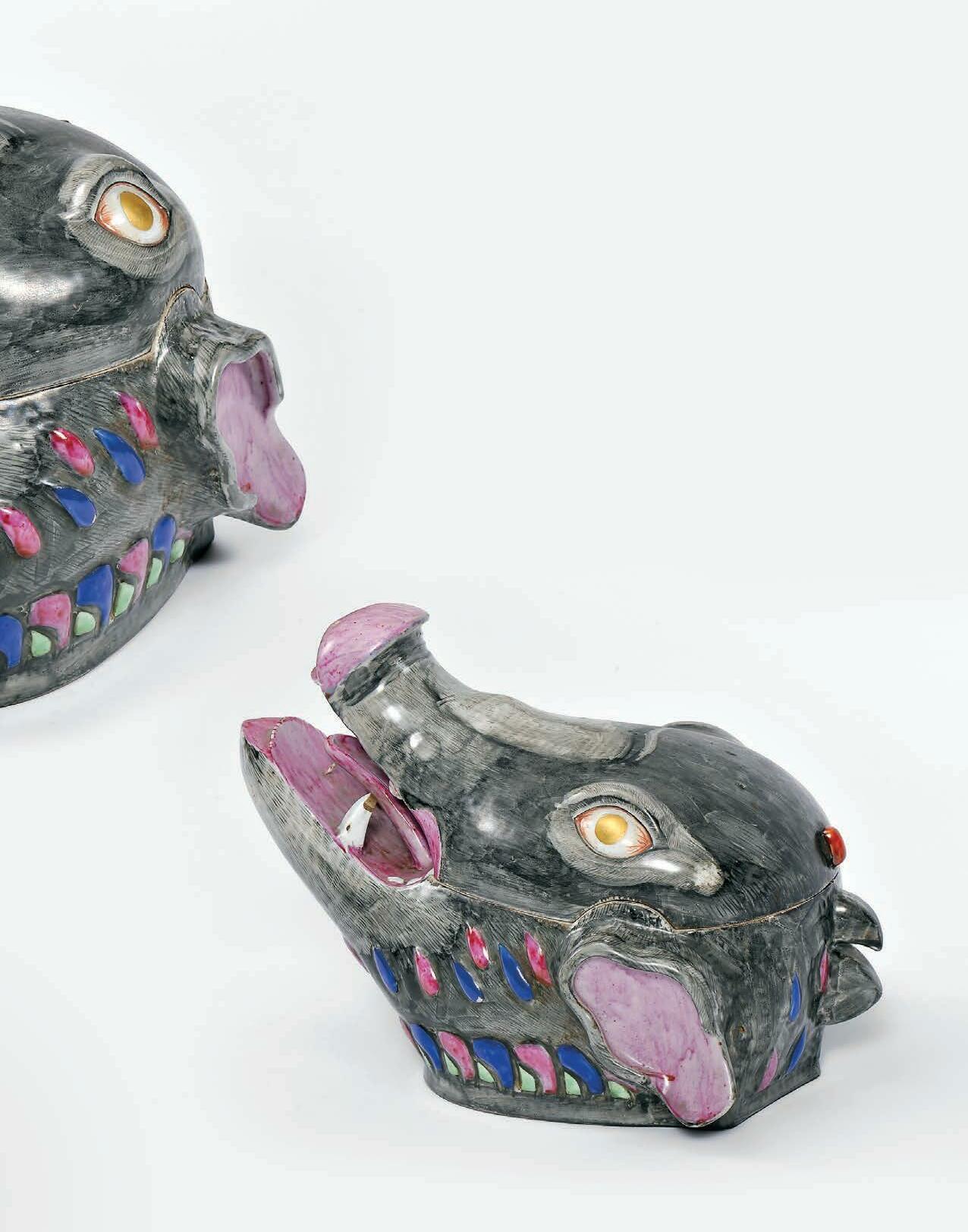 A tureen “hen” faience from the Real Fábrica de Louça ao Rato, decoration in different shades of vinous, Portuguese, restored tail, minor fault on the beak, faults on the glaze, marked FR TB