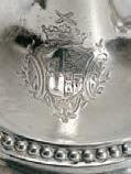 D. Maria I, Queen of Portugal (1777-1816), 833/1000 silver, beaded friezers decoration with engraved coat of arms - per pale: I Leão (of João Lopes de Leão); II Lacerda (?); noble coronet; Leão’s crest (of João Lopes de Leão), Portuguese, minor differences, signs of use, one candlestick with Lisbon assay mark (c. 1790-1800), maker’s mark attributable to Isidoro José Rodrigues Torres (17721809), the other candlestick with João Marcos de Faria (reg. 1795), possible maker’s mark