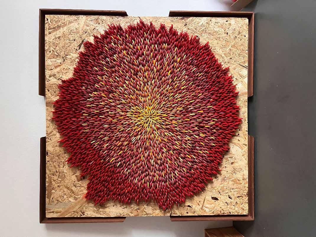 Acrílico, Pastel seco e impressão digital UV e INK pen sobre papel, assinado pela artista