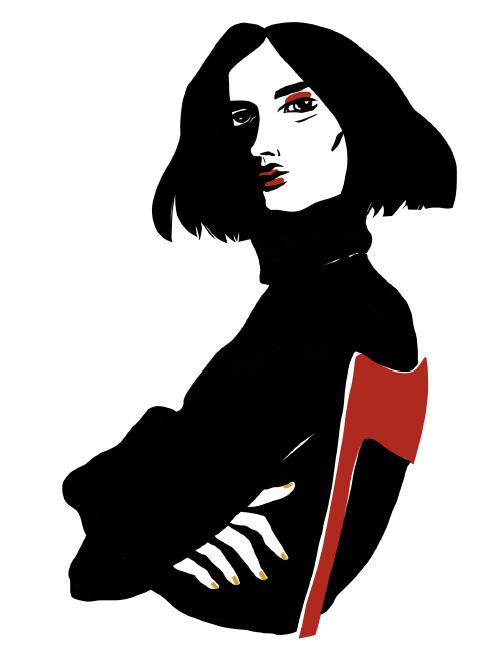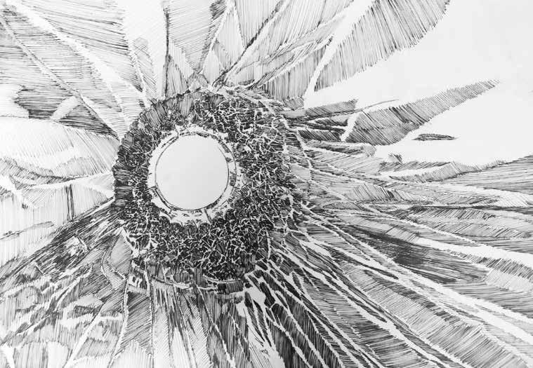 Desenho tinta da china sobre papel, assinado pela artista