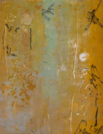 Acrílico e lápis de cera sobre tela, assinado pela artista
