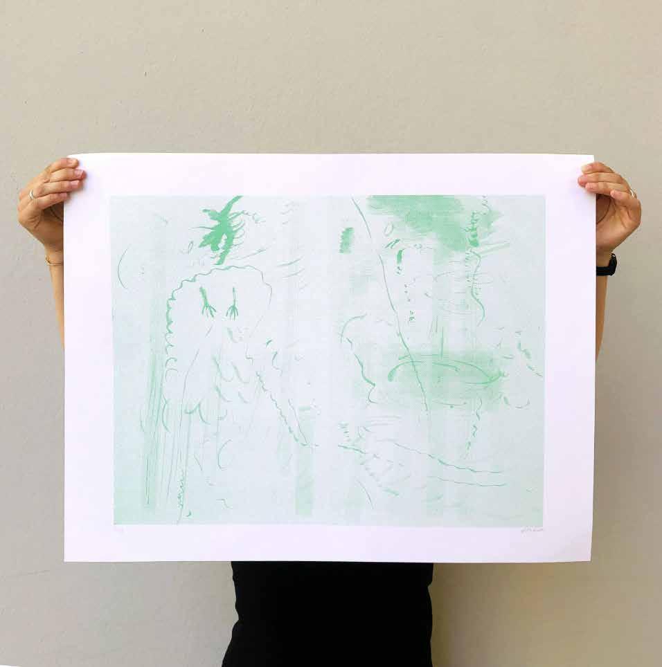Serigrafia papel Munken Pure 240gr, assinado pelos artistas Prova 2/25 de Edição especial em azul, emoldurada