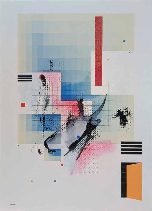 Artista visual e designer contemporâneo de Viana do Castelo cujo trabalho explora a intersecção entre a abstração geométrica, a tecnologia e a consciência. Enraizado nos legados da Arte Concreta e do Construtivismo, a sua prática reinterpreta essas tradições através da linguagem visual da era digital — onde materiais industriais, linhas vetoriais e intensidade cromática coexistem com a emoção e o simbolismo. Os trabalhos recentes de Viegas combinam painéis de alumínio composto, impressão UV, tinta tradicional e tinta spray, criando peças híbridas que habitam o limiar entre a pintura e a escultura. A sua abordagem