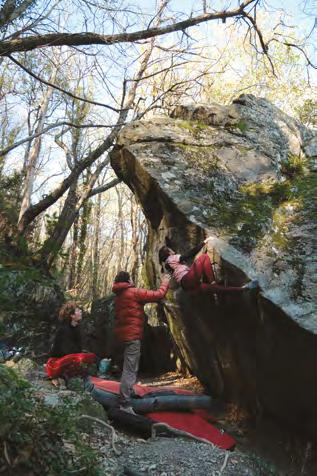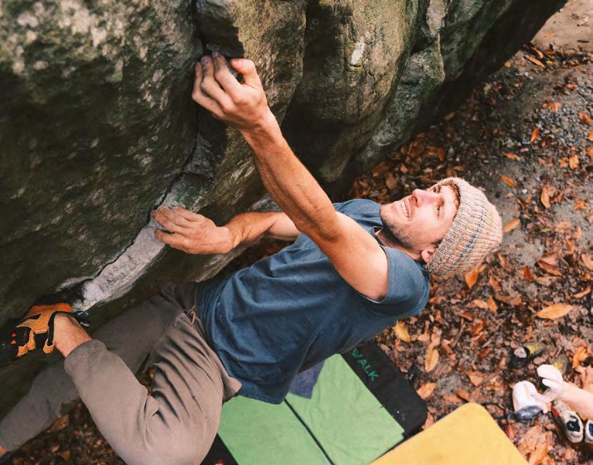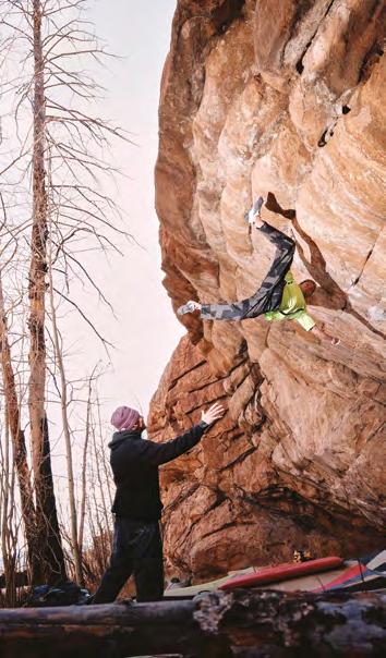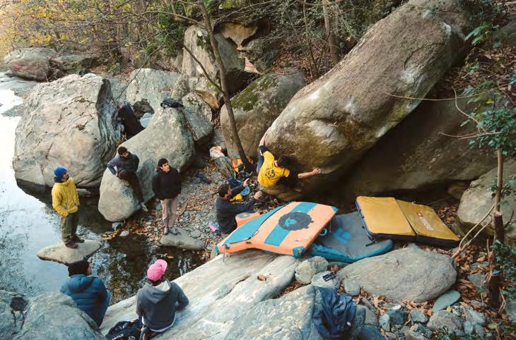 donne des conseils et nous anime chaque matin une session de mobilisation. Un combo parfait pour se préparer aux froides journées de bloc !