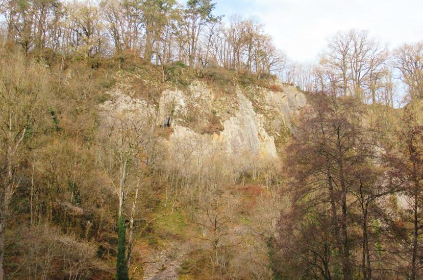 En haut : La grotte Delderenne depuis les rives de l’Ourthe.