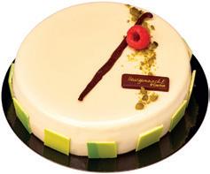 Découvrez le gâteau pistache vanille-framboise, 6 parts de 650 g à 14,75 €.
