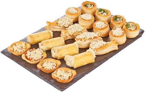 (4 x mini-rouleau fromage & jambon, 4 x tartelettes bolognaise, 4 x vol-au-vent, 4 x vidée fromage & champignons, 4 x poissons sauce bisque)
