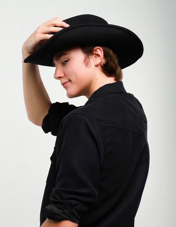 The lighting on her face, framed by the darkness of her shirt and hat, make this photo feel retro and dramatic.