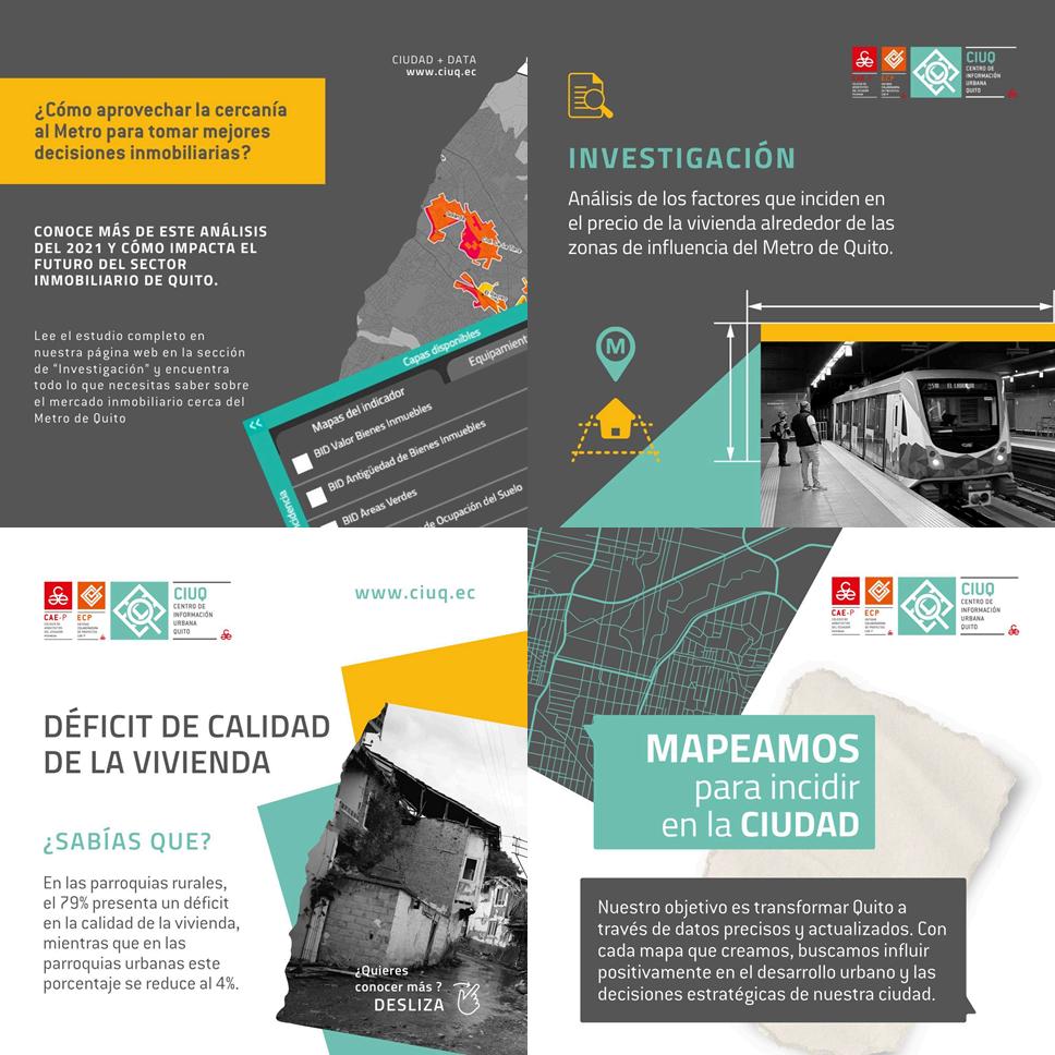 publicaciones que invitan al debate sobre la transformación urbana de Quito, fomentando la participación y posicionando al CIUQ como un referente en información geoespacial