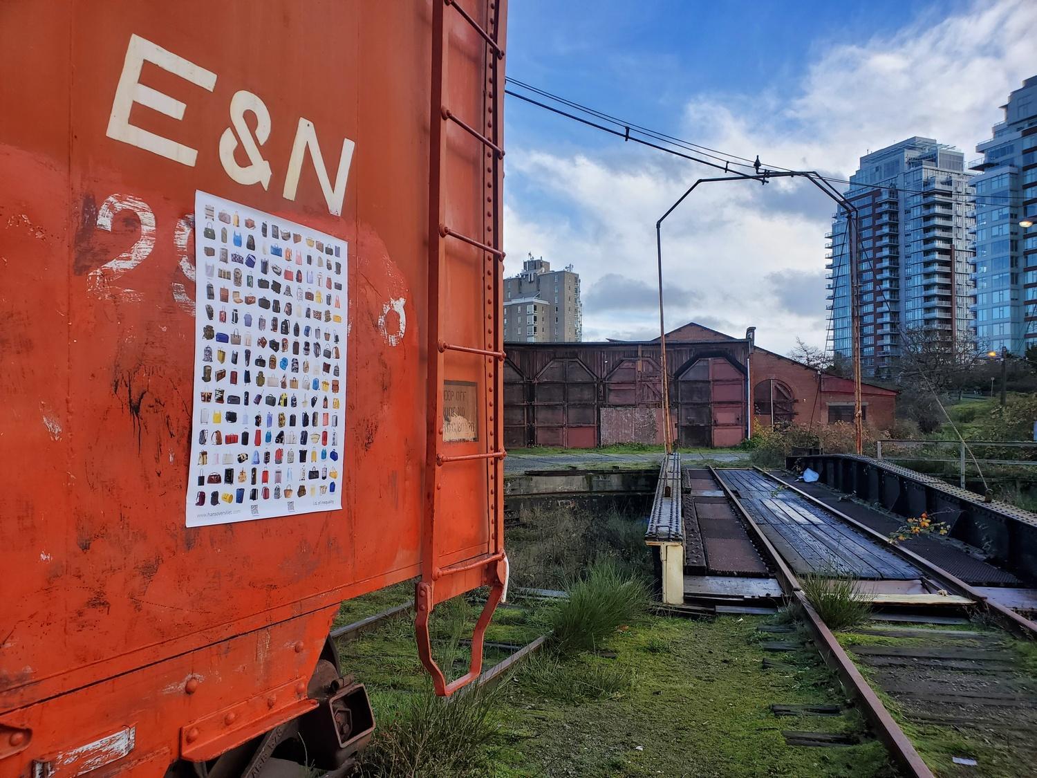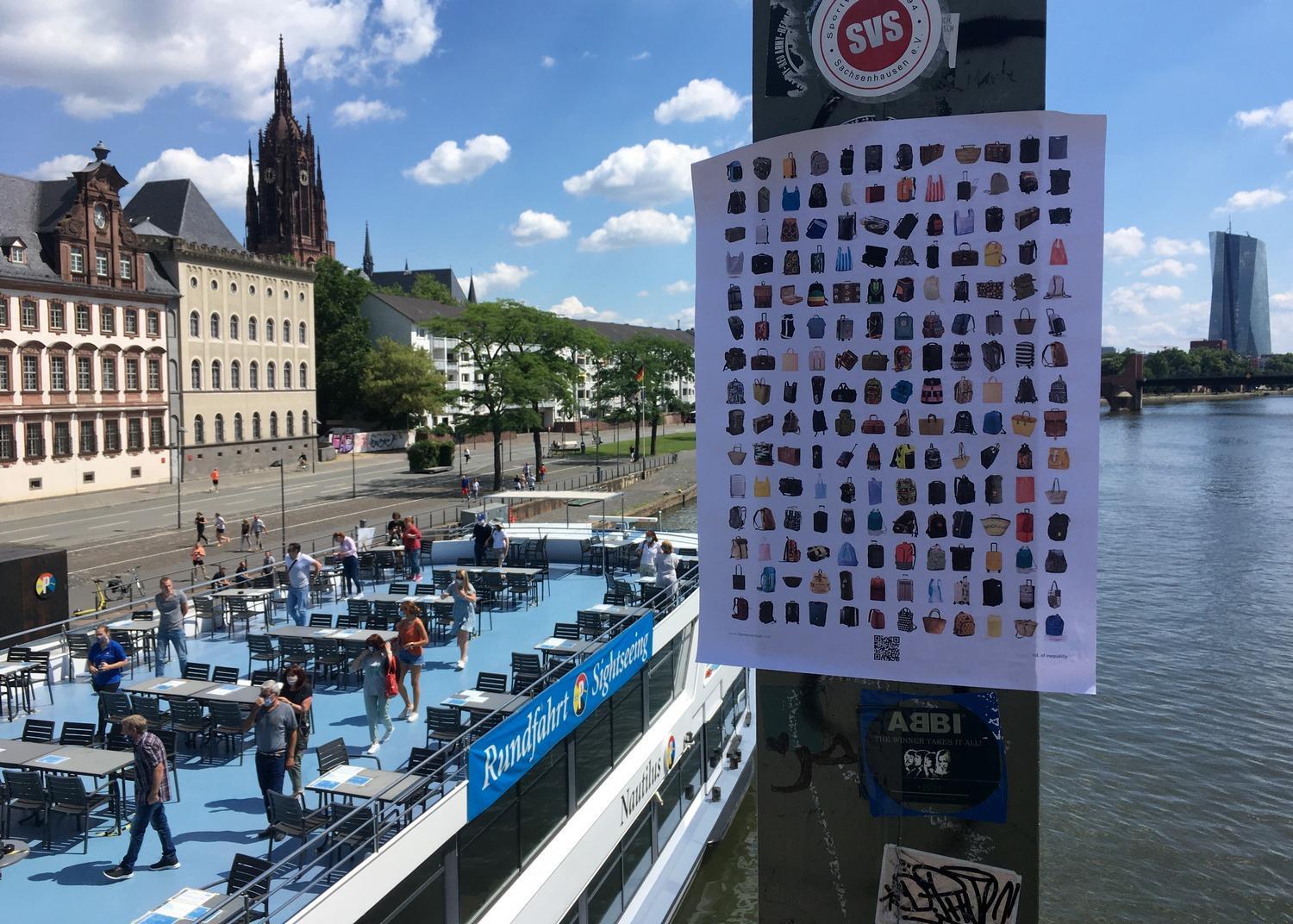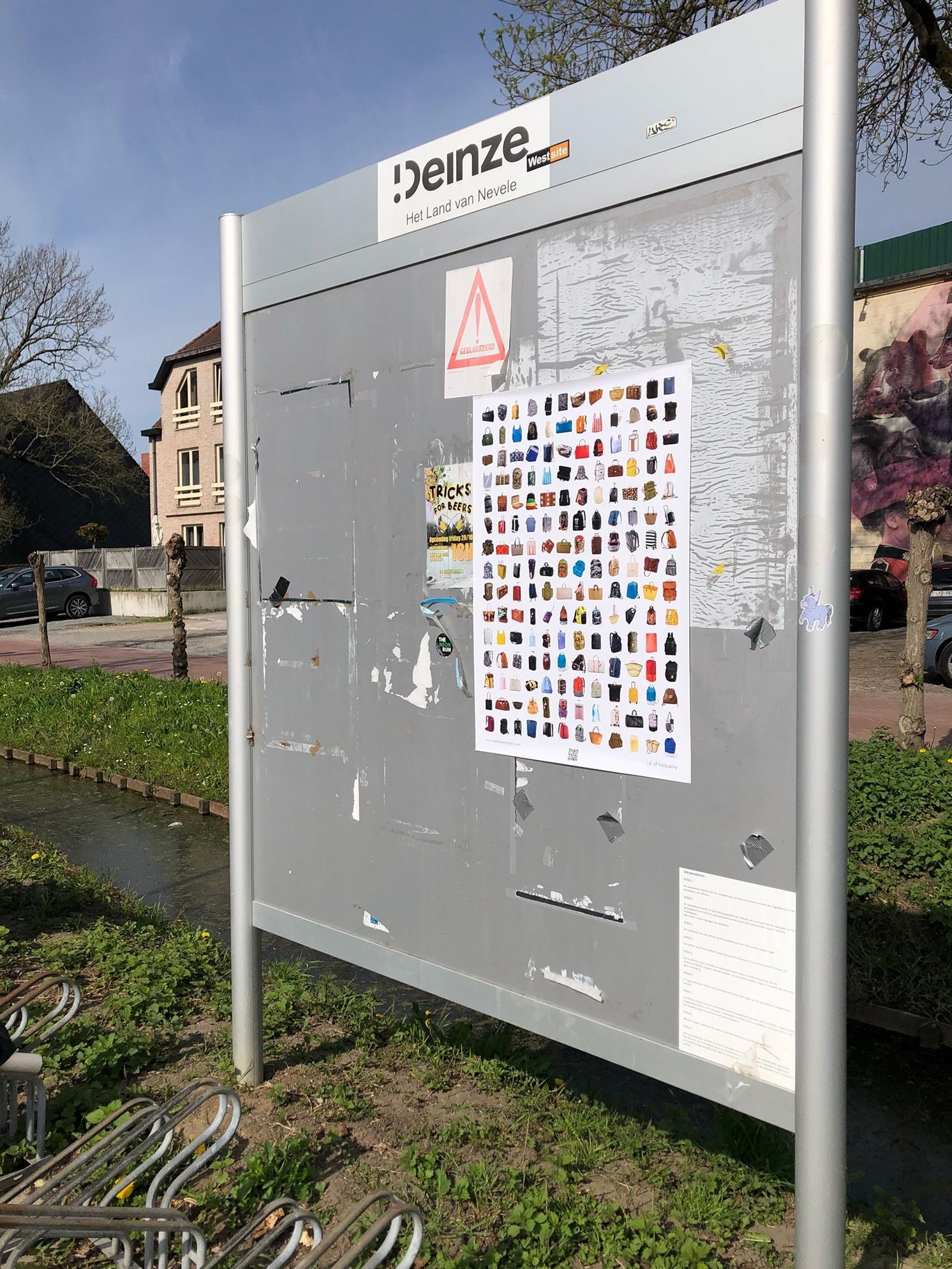 The people participating in DISTANT SUFFERING XXII | i.d. of inequality each have chosen a place in their public space that is important to them to hang the poster. That importance can be described as the most beautiful spot, the most charged, the most activistic, the most intimate, the most striking, the most historical, the most idyllic, the busiest, the most directly referring to travel, the place where (power)politics takes place, the daily environment, the most touristic that the city is known for, the most bland, the most dilapidated, etcetera. During the project, a number of people chose to hang and photograph the poster in several places that represent them.