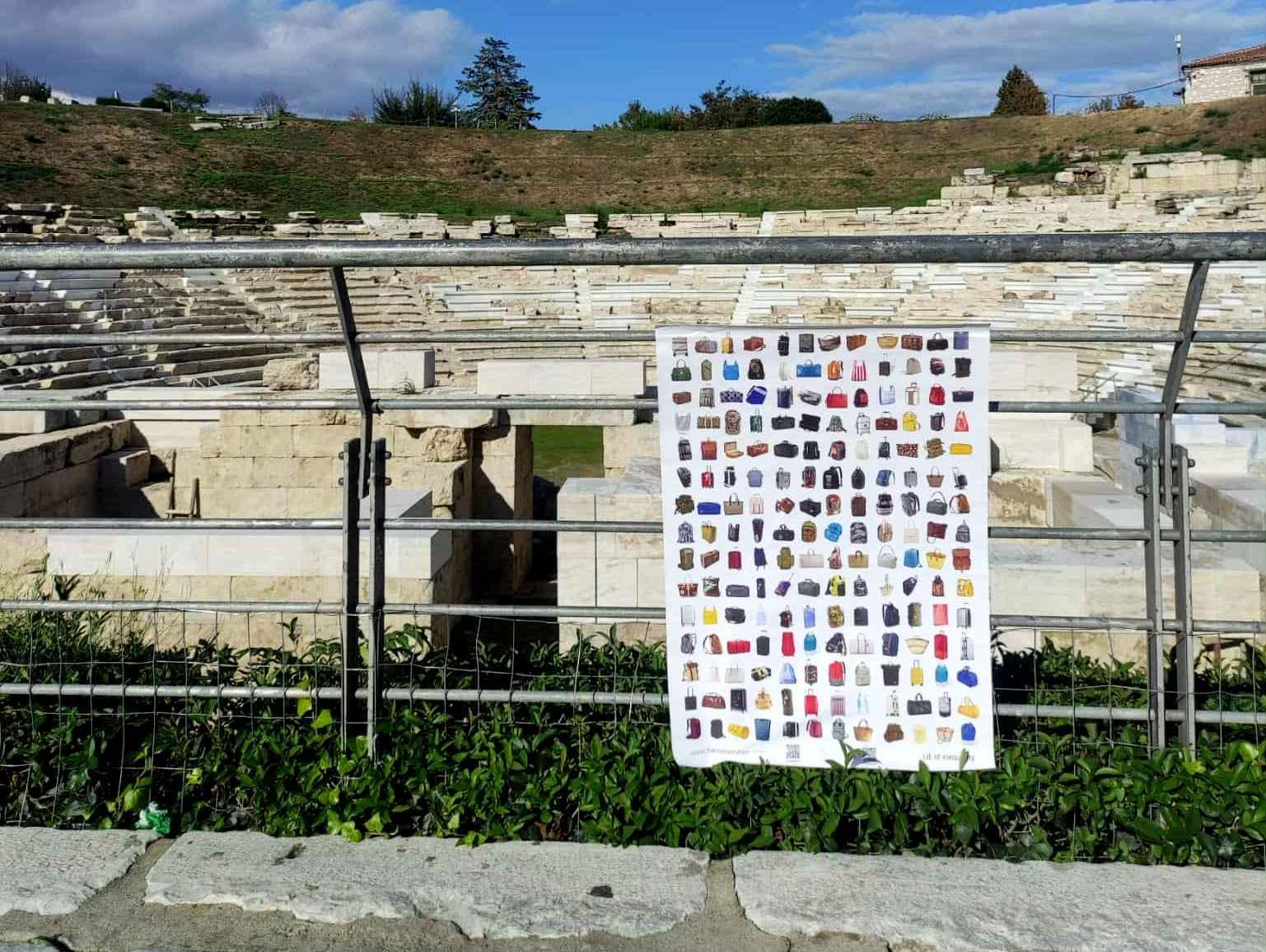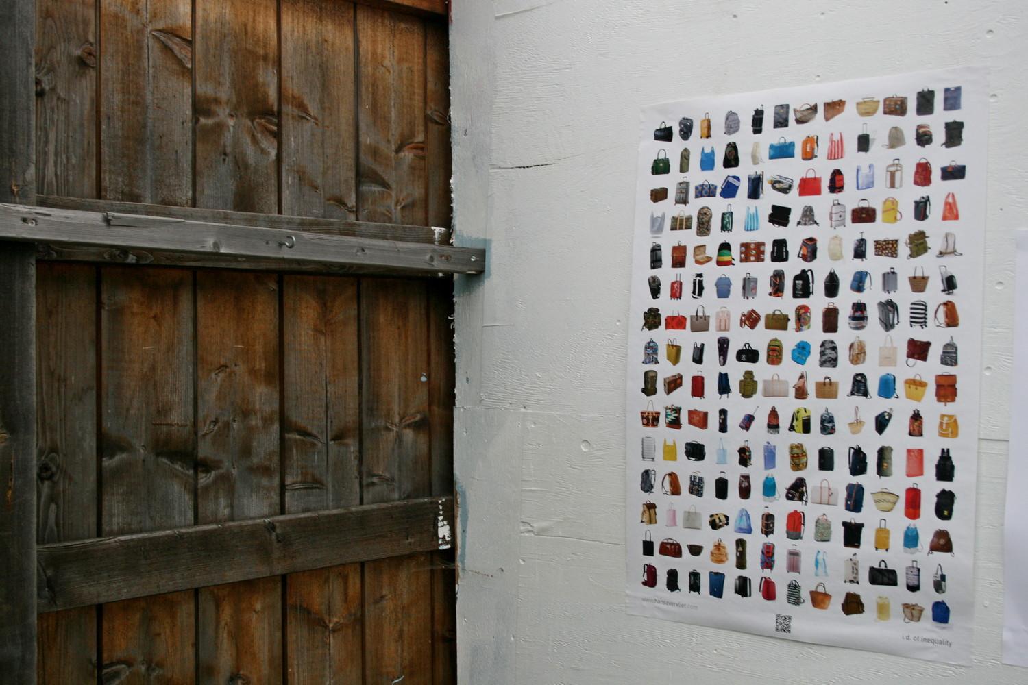 The poster shows one of the few similarities between these different travellers, namely their luggage. The poignant difference is in the contents of these suitcases, bags and backpacks.