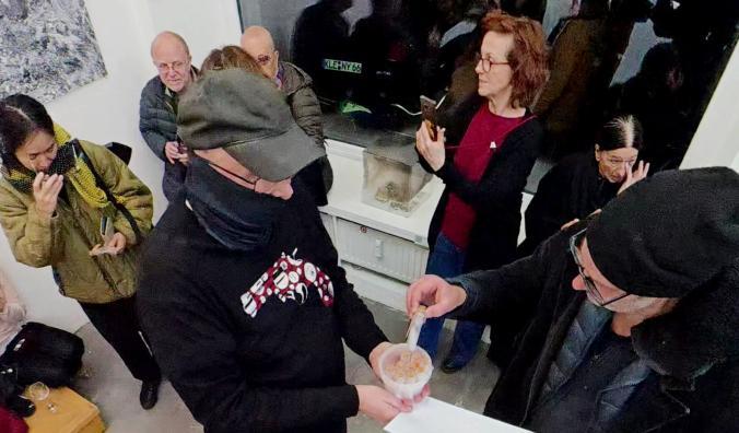 During the Juxtapose Art Fair in Aarhus, Denmark, for the first time my wife Willy and I handed people the art work one on one. We let the melting decide about the time frame: it guided the conversation almost like an hourglass.