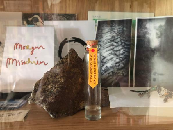 The melting bullet in my hand questions my position. Poetic but critical, this question continues, even when the bullet, now melted into a layer of water, stands between the art books in my cupboard where it slowly dissolves into nothingness and thus escapes being reduced to an art object.