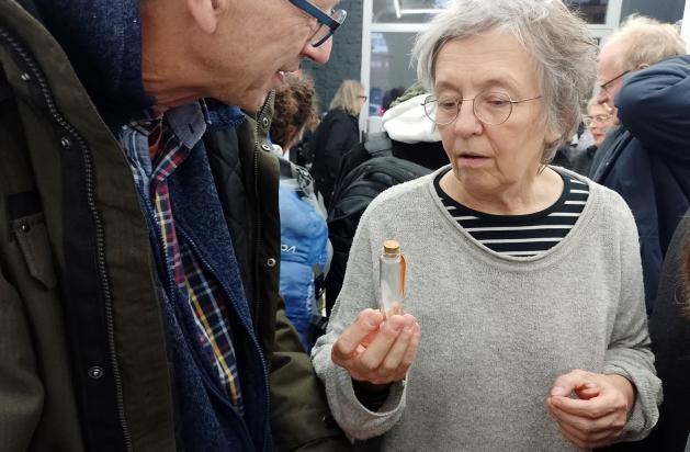 The people who thawed the bottle in their hands all became emotional after a very short time. First of all they considered the work as beautiful and than –sometimes at a deep personal level –meaningful. Some wanted to stop the process by putting the bottle back into the freezer, others photographed the the freezer, others